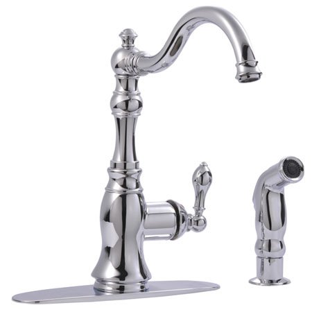 - Single Handle Deck Mount Kitchen Faucet with Side Spray.